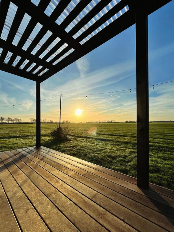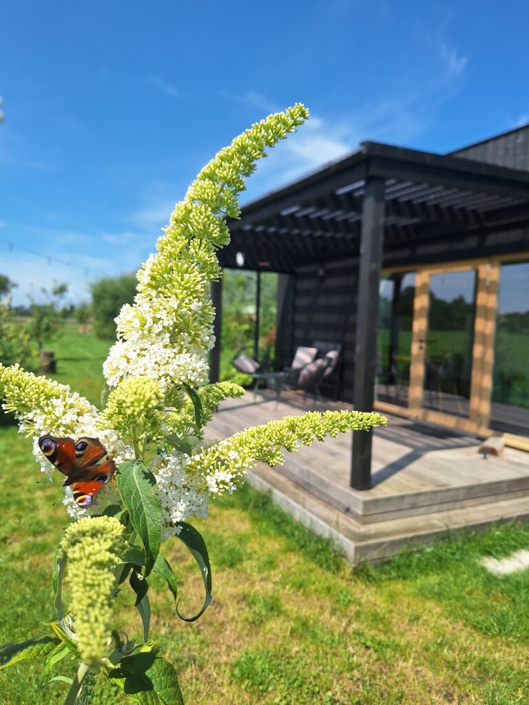 Little Loenhouse is gelegen op de wei naast de boerderij. Je kan er genieten van een mooi zicht op de weilanden en het groen.